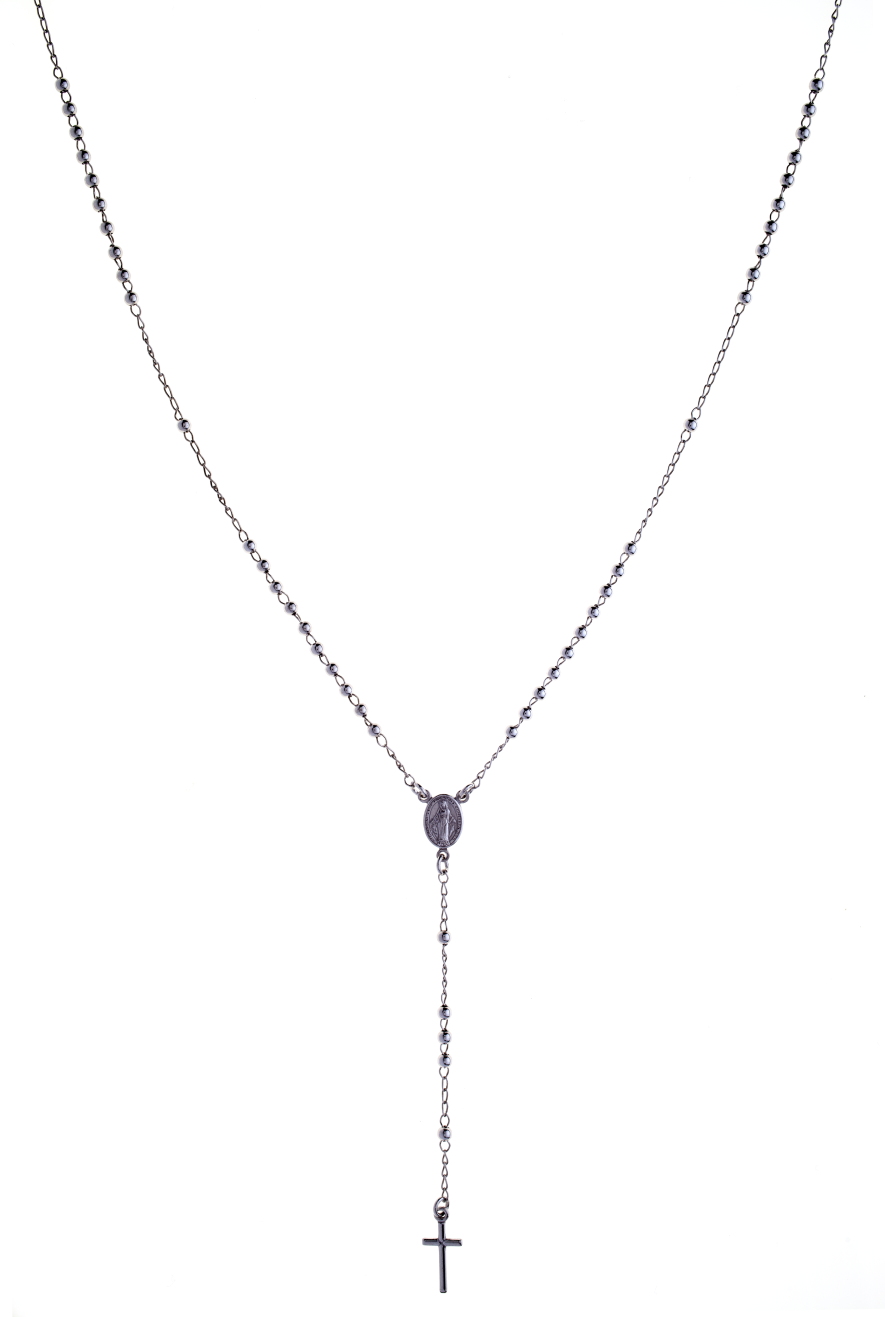 Collana rosario pendente Prega&Ama in argento925 - RODIO - (diam. Grani 3) (Lung. 50 + 9 cm)