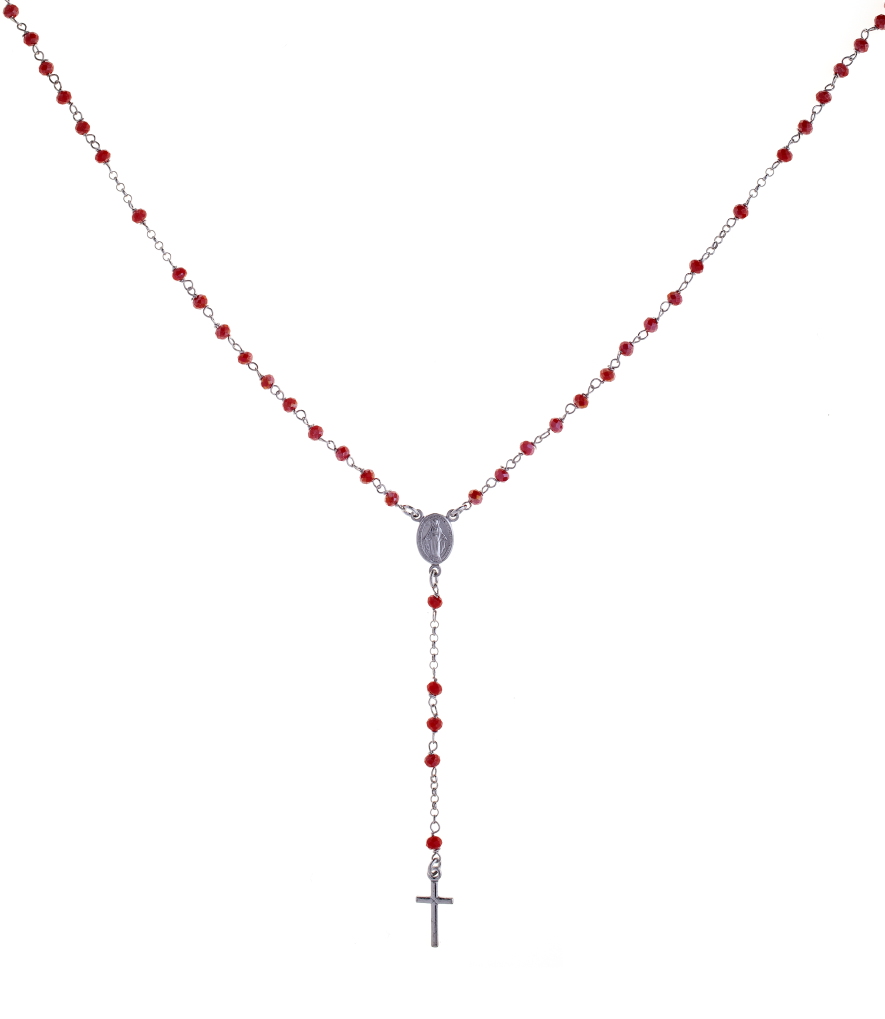 Collana rosario pendente Prega&Ama in argento925 con pietre rosse - RODIO - (Lung. 50 + 9 cm)