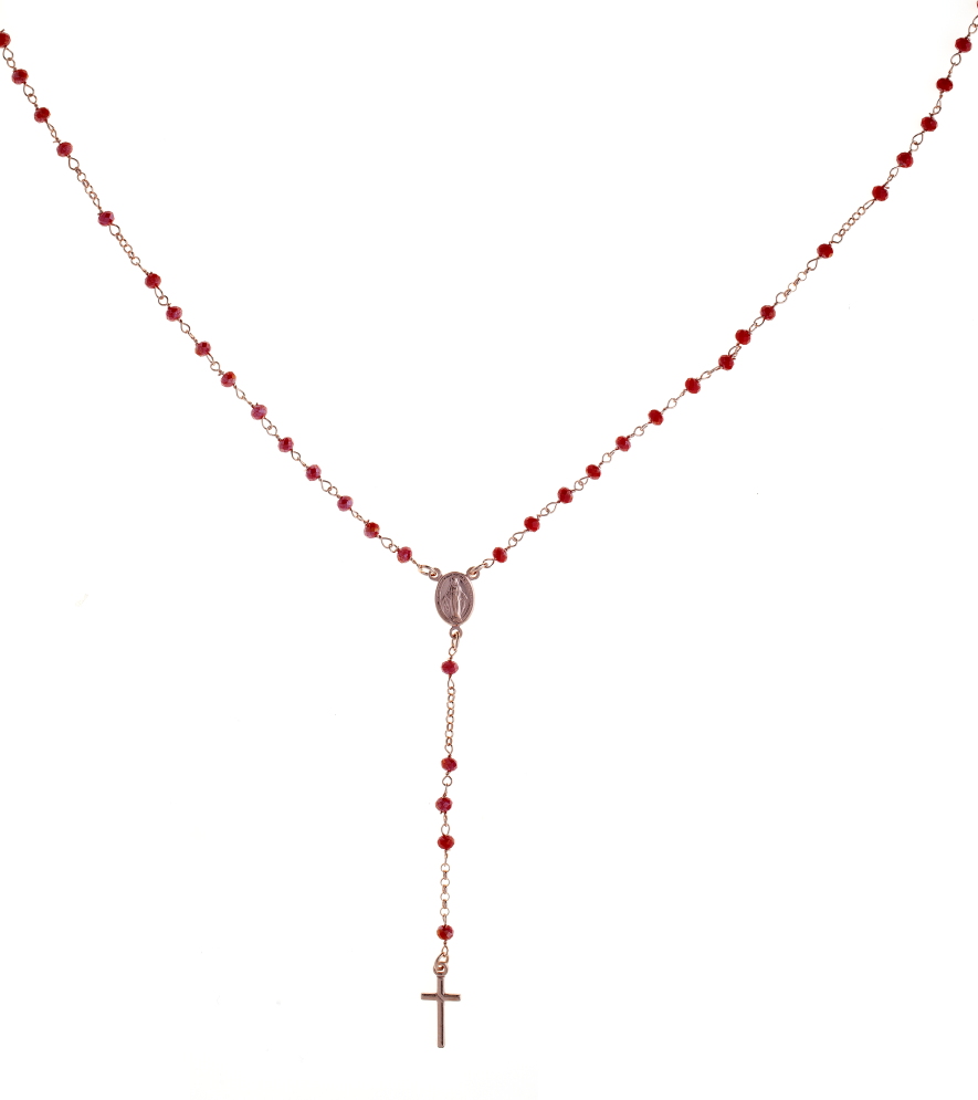 Collana rosario pendente Prega&Ama in argento925 con pietre rosse - ROSE' - (Lung. 50 + 9 cm)