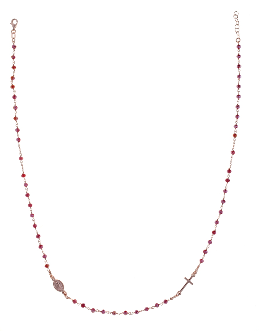 Girocollo Prega&Ama in argento925 con pietre rosse - ROSE' - (Lung. 50 + 5 cm)