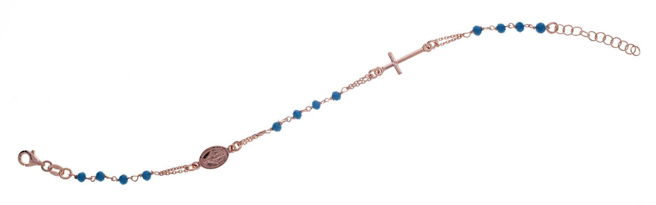 Bracciale rosario Prega&Ama in argento925 con pietre azzurre- ROSE'- (Lung. 19 + 4 cm)