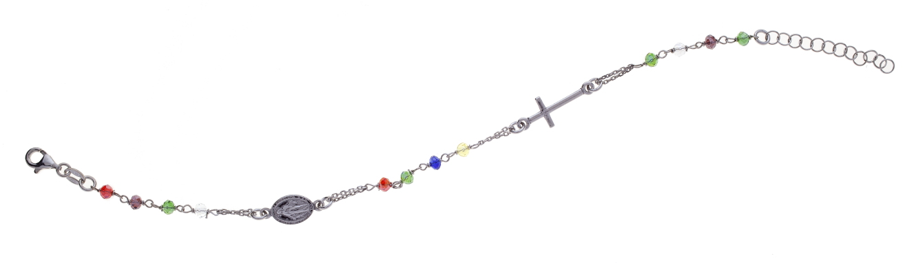 Bracciale rosario Prega&Ama in argento925 con pietre multicolor - RODIO-  (Lung. 19 + 4 cm)